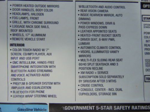 Slt-1 2.4l back up camera side air bag system multi-function steering wheel