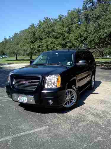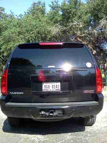 2007 GMC Yukon SLT 4dr SUV (5.3L 8Cyl) Black Exterior and Interior. Loaded with 5.3L V8 OHV 16V FFV Engine, Leather Seats, 3 Row Captain Chair Seating, Special Chrome Wheel Rims, Heated Front Seats, Power Front Seats, Driver Seat Memory, Leather Steering Wheel Trim, Cruise Control, AM/FM/CD Audio System, DVD with 2 headsets and remote, Navigation System, Automatic Climate Control, Power Windows, Power Door Locks, Power Exterior Mirrors, Park Assist, Running Boards, Tow Package, Luggage Rack, New Tires in last 3,000 miles with Road Hazard Warranty, Fully Serviced at Dealer in November 2012, New Battery Installed November 2012 with 36 month warranty, No Exterior Dings, Nicks, etc., Bull Bumper Guard and more!