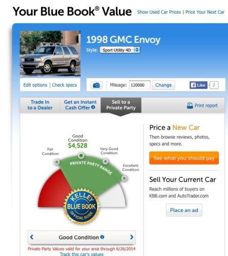 This item up for sale is a 1998 GMC Envoy. The engine starts right up and runs perfectly smooth. This vehicle has the reliable GM 4.3L V6 OHV 12V FI Engine that is well known for lasting a very long time. You will see some cars with this type of engine for sale with well over 200,000 miles on them. This SUV has also had over a thousand dollars of work put into it to restore it as follows and I also have all the paperwork included to show all the parts purchased and repairs completed. This is also one of GM's highest trim level cars of that year. This Envoy had about every luxury option available at that time in 1998. Mileage is 130,234 Please see the included pictures of the NADA and Kelley Blue Book value of this vehicle for $4075.00 and $4528.00. If you combine the Bluebook value and well over a thousand dollars in restoration done, This car should sell for over $5,000.00 . I am selling it cheap since I am moving soon and need to get rid of it before I go. This is your chance to get a great deal. Repairs & Parts; The windshield and wipers are brand new with out one single mile driven on them yet. The entire rear braking system has been replaced on the rear axle.The backing plate, the rear calipers, The horse shoe brake pad, all the springs, hoses, screws, everything from the axle out is brand new in the rear. Both front brake calipers, rotors, and pads on both front wheels are new. Monroe MAX-Air rear adjustable height shocks installed. Cap, ignition rotor, PCV valve, Fuel filter and spark plugs changed. Evaporative Emission canister controller and Fuel pressure regulator replaced. The head light assembly has been rebuilt and the original HID lights have been removed. New bulb sockets have been installed and the plastic has been resurfaced and polished back to almost new condition. Both side mirrors have been replaced with new ones. New turn signal assembly on steering column. New switch assembly for all 4 windows and door locks. New Starter. Installed washable K&N air filter. New ignition switch. Oil coolant lines to oil filter. Sway bar bushings. New serpentine belt installed last week. There is a dent in the hood from where a tree branch fell on it during a hurricane. Since it is on the hood, knocking it out should not be that difficult. I know that you can buy a new hood at a junk yard for this vehicle for about $125.00 or new on eBay for $260.00 Amentities; Bose audio system with 6 disc console mounted CD changer and tape deck. Sun roof- DOES NOT OPEN. Motor works and sunroof itself is sound. Power seats, windows, and door locks. Real varnished wood grain accents throughout. Heated front leather bucket seats. 4 wheel anti-lock ABS brakes Front Air bags. Keyless entry and alarm system Four wheel drive (4WD) Cruise control Self adjusting rear view mirror. Auto temperature adjusting climate control system with temperature sensor in roof. Trip computer and digital compass built into dash. Universal transmitter for garage doors. Back seat audio system controls. Standard features; Bucket Seats Center Console Fog Lights Garage Door Opener Heated Front Seats Keyless Entry System Lighted Entry System Locking Differential Overhead Console Power Brakes Rear Window Defroster 4.3L V6 OHV 12V FI Engine 15 Inch Wheels 4-Speed Automatic Transmission Tachometer Trip Computer Alloy Wheels 4-Wheel ABS Driver and Passenger Front Airbags Anti-Theft Alarm System Leather Seating Power Driver's Seat Cruise Control Power Steering Tilt Steering Wheel Leather Steering Wheel Trim Air Conditioning (Does not blow cold) Automatic Climate Control Intermittent Windshield Wipers Power Windows Privacy Glass Rear Window Wiper Power Door Locks Auto-Dim Rear View Mirror Roof Rack Specifications Exterior Maximum towing capacity: 5000 lbs. Maximum payload: 1301.0 lbs. Length: 183.8 in. Gross weight: 5350 lbs. Wheel base: 107.0 in. Interior Rear hip Room: 51.3 in. Rear head room: 38.2 in. Rear leg room: 36.3 in. Rear shoulder room: 57.2 in. Performance Base engine type: gas Horsepower: 190 hp @ 4400 rpm Torque: 250 ft-lbs. @ 2800 rpm Turning circle: 39.5 ft. Fuel Fuel type: gas Fuel type: regular unleaded Fuel tank capacity: 18.0 gal Please see the pictures for more information about the condition of the item. If you need more pictures , please don't hesitate to ask. Happy Bidding :) If you have less than 5 feedback points, You must email me for approval before bidding. I reserve the right to cancel any bids or invalidate any of my auctions that involve bidders with negative feedback, unfavorable profiles or recent registrations at my discretion at any time. $ $ $ $ $ Payment Information $ $ $ $ $ I accept Paypal & Cash in person within 3 days of auctions end. ***** Shipping Information ***** This item ships Worldwide. Shipping cost varies by location. Buyer is responsible for all logistics and fees for shipping of this automobile. I have been doing business on eBay for over 16 YEARS with 100% FEEDBACK from over 302 happy customers. I am not a large distributor, I am an average eBayer who focuses on completing my transactions quickly and with the utmost courtesy. So please, bid with complete confidence :) Please completely read the item description, payment, and shipping information carefully before you bid. Your bid denotes acceptance of all terms and descriptions contained throughout this auction. Place a bid only if you're serious about buying the item. If you are the winning bidder, you will enter into a legally binding contract to purchase the item. Requests to cancel bids will not be honored. A non-paying bidder report will be filed with eBay 7 days after the auctions ends to recover all the fees of the auction. All auctions sales are final. Returns are only accepted if item arrives D.O.A. and if you paid for shipping insurance. |