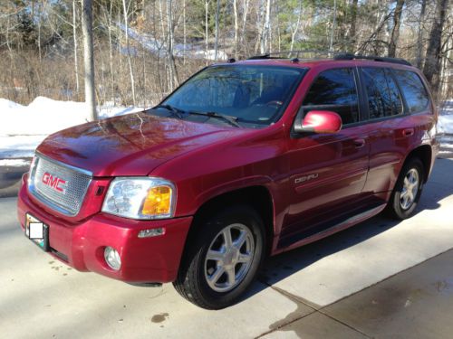 Beautiful Red GMC Envoy DENALI. 130,028 miles at the time of listing. Strong and powerful 5.3L V8 engine. Electronic 4WD with Auto 4WD option. Tires are in great shape with 80-90% remaining. Wheels are 18" chrome finish. There are some indications of pitting and scuffing on the wheels which is consistent with the vehicle's age. Body colored running boards. Power Moonroof. Power seats, Heated front seats. Trailer receiver hitch with 7 pin wiring from factory. Onstar equipped (not activated). XM radio equipped (not activated). Touch screen Navigation system. It looks like the hood and or right front fender may have been replaced by the previous owner. There is a little bit bigger gap on that side where the hood meets the fender. Only cosmetic, doesn't alter function at all. There are some scratches in the clearcoat which is typical with the vehicle age (see photo). Selling only because we have a 2nd SUV now.