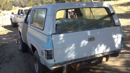 BLAZER HAS BEEN STRIPPED TO BE PAINTED 3 YEARS AGO. HAS GOOD SEATS, BELTS AND TRIM. NEW DOOR PANELS AND TRIM, CARPET KIT. AND MISC PARTS. NO MOTOR TRANS OR TRANSFER CASE. HAS REMOVABLE HARD TOP. BLAZER SOLD AS PICTURED WITH ALL PARTS I HAVE. SOLD AS IS ..... NO REFUNDS.....LOCAL PICK UP...... |