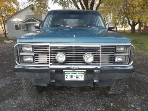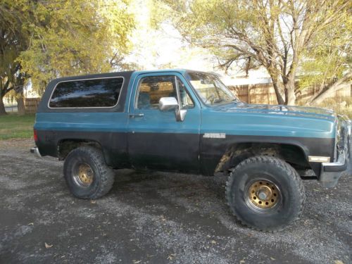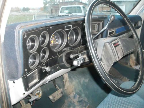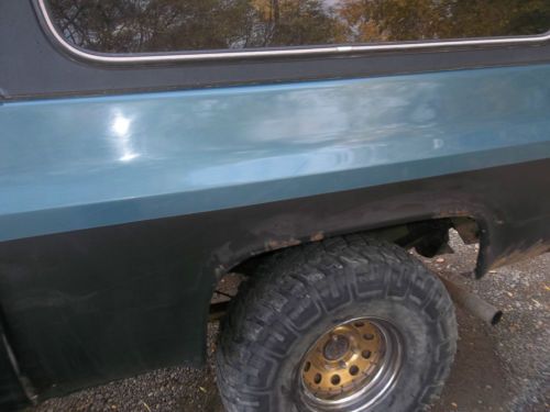 1984 GMC Jimmy Sierra Classic "Blazer" 4x4, recent engine swap with 350 chevy motor, automatic transmission, tires are 35x12.50 and are in good condition with gold and crome rims, manual locking hubs, Interior is blue in color and in good to fair condition. Has brush guard and off road lights, New battery, starter does have an issue (possible problem related with engine swap, housing or spacing but starter does work) Runs good last used in mid October during hunting season in Lake City and Powderhorn area in the rocky mountains of Colorado. Good solid rig for mountains and snow with additional work would make a good mud runner or rock crawler most work is already done. This rig is two tone blue and black, body and frame are in good condition body does have some surface rust. I can accept paypal, personal check or cashiers check for payment. It is responsability of buyer for pickup, but I do have accesss to local contractor that can pickup and deliver with reasonable rates if so desired. I have had 100% satisfaction rating in past from buying and selling on ebay, but I have changed ISP carrier and forgot to change email with ebay and have lost password for account so I have to start over. If you have additional questions or would like additional pictures please contact me.