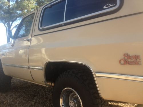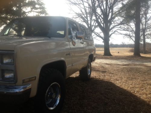 Up for auction is my fuel injected 1987 GMC Jimmy K5. This is a very original southern vehicle, with very little rust. I have owned at least 6 of these k5's and I can tell you it easier to start on one with potential than to buy a cheap rust bucket and fix it. This is a factory equiped fuel injected 305 and a new engine was installed about 10,000 miles ago. It still has the factory auto locking hubs. All the power windows work; however they are a little slow. The dash is perfect with no cracks along with the door panels. The seats are vinyl and the driver seat will need to be recovered, but the other 2 are fine.The air condition works, but may need charge come summer. The last time I ran the ac was september and it worked fine. The paint is a little weak especially on the passenger side, but driver side is fine. My guess is it stayed under a carport and the passenger side was exposed to the elements. A small exhaust leak can be heard when you first crank it up but it goes away after it warms up, so I am assuming it is where the manifold and collector meet. It does not have the typical rust on the quarter panels, fenders or rocker panels. The only spot is under the top on the passenger side, pics will show this. This is my daily driver, so I have tried to keep up with maintenance, but it is 27 years old and things just fail. If you have never owned a older vehilce, replacing parts is just part of owning one. I think it has a valve cover leak, but the engine does not smoke and the fuel injection sure is nice opposed to a carbuerator. This is the only fuel injected one I have owned and it is nice not having to pump the gas to crank it up. The transmisssion is a 700r4 which means it is a overdrive transmission. The vehicle shows 73,000 miles but Im sure it is at least 173,000 so I'm sure the transmission has been replaced at some time. If you are familiar with the 700r4, factory built ones do no last long, so that's why I say it probably has been replaced with 173,000 miles. I put new 33x10.50 BFG Mud Terrains on it in November 2013 so they may have 1500 miles on them. Other new parts are starter, battery, alternator and axle seals. Bumpers are also in good shape and has a receiver hitch. I do not have to sell this vehicle and if it does sell I hope it goes to someone that wants one to restore or keep factory original. This also for sale locally so I may end the auction early. A $500.00 is due at the end of auction. I can be contacted @ 731-780-4298 if you have any questions or need to see anything else.