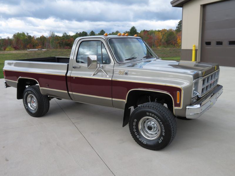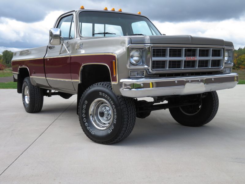 No call please. e-Mail : jennifermcgrath051@gmail.com Very solid truck 1977 GMC is a half-ton pickup and is finished in metallic gray and burgundy over a matching interior, and power is from a 400ci V8 paired with a three-speed automatic transmission and a two-speed transfer case. Additional equipment consists of a 4" lift, 33" tires, bed liner, and a modern period-style stereo. Service in summer 2020 included replacement of the alternator and spark plugs as well as a carburetor rebuild and an air conditioning retrofit.