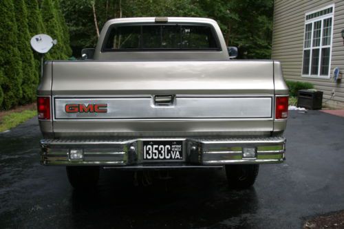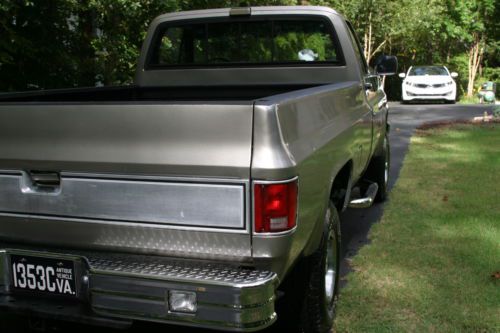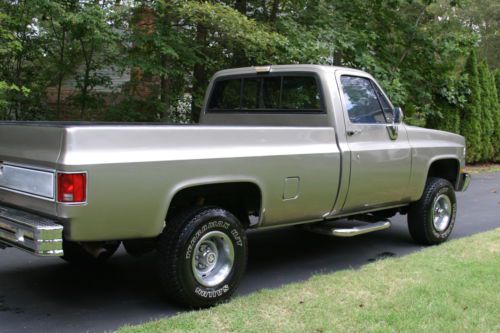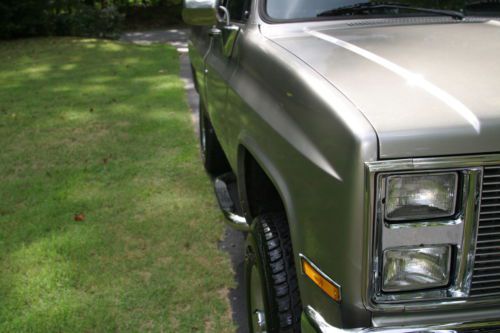 This truck is super clean !!! Its a daily driver that has been restored to a really nice driver quality. The truck is driven nearly everyday. I have spent over $20K on restoring it alone. Truck frame was sand blasted and painted from the motor back. Cab and body mounts, brackets and bushings replaced. All new suspension front and rear. The brake system has been completely replaced including the brake lines, rotors, calipers, drums shoes and wheel cylinders. Master cylinder on the engine replaced. All the exterior sheet metal is original. Cab corners and passenger rockers were replaced. Front inner fenders were replaced. All exterior badging removed and the truck was painted in silver mist metallic with clear coat. Shows a few stone chips and scratches from everyday driving but nothing that would show in the pictures. It does have one small dent on the passenger rear if you can make it out in the picture about the size of a quarter. I may get a chance to have it repaired. Its really minor. I dropped my trash can and it hit the side. Like I said I drive this truck almost everyday. Step bars installed. Spray in bed liner. Its a head turner. I get compliments everywhere I go in it. The motor is a Chevy 305 bone stock original and runs like a top. The 4 wheel drive was redone including the wheel bearings and hubs. Works great. It also has A/C which I just had serviced and charged. New starter, fuel pump, 600cfm Edelbrock carb, fuel lines and battery. I replaced both fuel tanks and fuel transfer wiring and switch. New bumpers with lights front and back. The head lights and custom front grille installed. The door handles have been replaced. All lights as well as the lens covers replaced. New 31-10:5 tires. The rear end and trans were rebuilt. Windshield and rear sliding window replaced. Inside the cab everything has been done too. The inside of the cab sprayed with Raptor liner, door sills as well as the lower dash panel. Looks fantastic. Seat re-done in black. New dash installed. All new Pioneer speakers. New carpet and headliner. Interior panels replaced including both door handles. All power window and lock switches replaced. The two lower kick panels were painted. All new seat belts and cab lighting. New Sony stereo is wired but I haven't installed it in the dash, but it does come with the truck. I just couldn't get myself to modify the stock dash. Power windows are a little slow but they work and are tinted. I'm sure I'm missing something, I've spent a ton of money on the truck and it looks and drives good. Don't hesitate ask me any questions or feel free to inspect before you bid. Buyer responsible for inspection and transportation costs. I reserve the right to end the auction early if it sells locally. I will assist buyer with transportation arrangements. I've set the reserve low enough to sell and where I feel is a fair price. Winning bidder must submit $500 deposit within 24 hours of the auction conclusion. Cash or certified funds only. Thanks and happy bidding