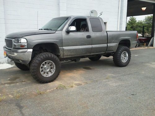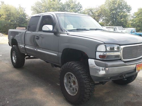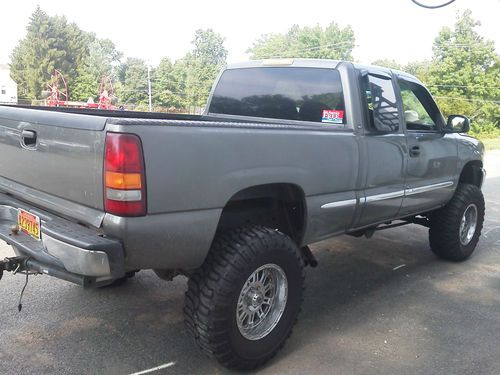 up for sale is my 99 GMC Sierra 1500 5.3L extended cab short bed lifted 9 inches. has a newer motor(65,000), trans was supposedly rebuilt when i bought the truck about a year ago, and as far as i can tell that holds to be true except for the solenoid issue? I drove it to the poconos and down to outer banks over the summer with no issues. Gets 23 mpg on highway due to tuning. has efi live custom new front differential, cold air intake, has atune, comes with 37 inch interco ssm16 tires with only 15,000 miles on 18 inch kmc chrome wheels. Has new water pump, new ball joints, new wheel bearings, new cv shafts, new u joints, new rear axle bearings and seals, new brakes and rotors all around, 2 inch add a leaf/helper spring in rear, truck runs beautifully and for the year it is in really good shape, no rust whatsoever...for this year thats crazy!!!! very good shape, i would keep it but i am in need of a heavier duty truck! also the interior is in great shape. has wear but overall good shape, no cracks or rips or holes.