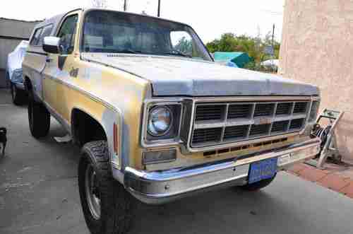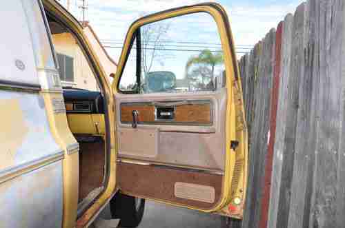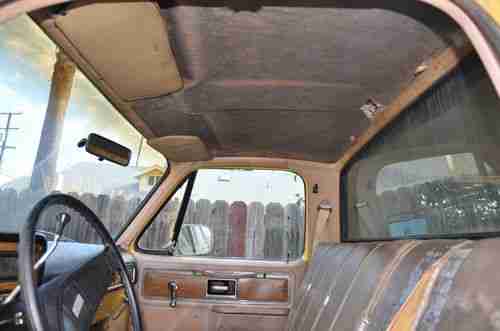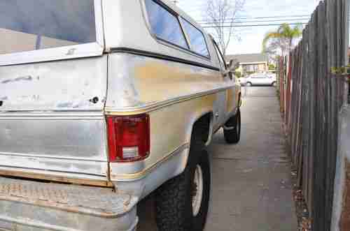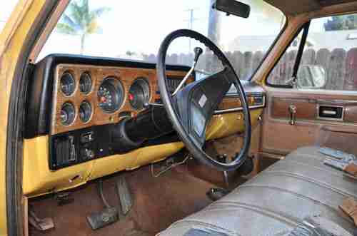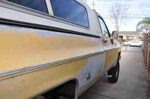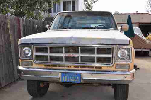 1977 gmc 3/4 ton truck, camper special. has a 350 with a 350 trans. starts and runs good. not reg since 2007. interior and exterior is all original. needs to be smog. has new smog pump,new fuel pump and fuel line. new front shock, new tie rod ends,new pitman arm, new gear box. has a 2'' body lift.has a deep b/m trans pan. new light switch. has electronic ignition. air condition has to be connect. body is in good shape. has two side tanks, drive side is connect. truck need,seal between the trans and transfer case. front drive shaft not connect. selling because i need the room. the first $200.00 to be paid in my pay pal account within 24 hrs at the end of auction. bal's to be paid in full when truck is pick up. good luck. sold, as is were is. have right to cancel any time.