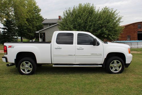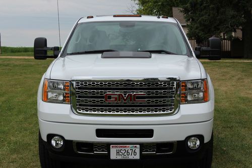 For sale: 2012 GMC Denali HD 2500 Duramax 4wd. 13142 miles. This truck has every factory option available. 20" wheels/ heated/ cooled seats/ heated steering wheel/ fast idle/ GM running boards/ GM bedliner and rail caps/ Navigation/ Sunroof/ Rear DVD entertainment/ Banks muffler back exhaust. No engine modification. No 5th wheel ever installed. Call 920-255-3033