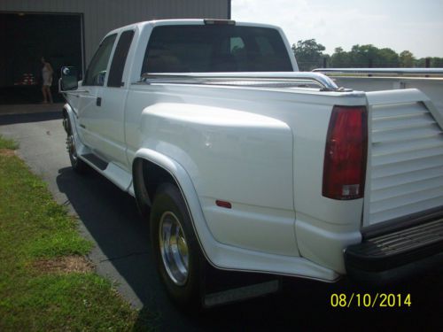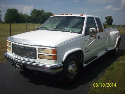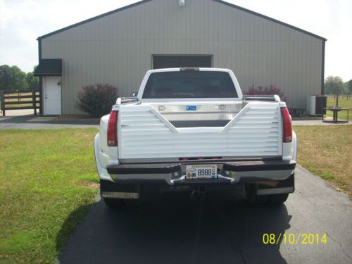 For Sale is a 1996 GMC Sierra Dually tk white in color,this truck has been garaged kept with just over 100,000 miles, I'm selling due too selling my horse trailer and I know longer need it.this truck come with power seats/door locks,air,cd player,fith wheel ball in bed,tool box and 454 vortex motor,paint is like new and no rust. This truck has been used to only pull a light weight alum horse trailer. If your looking for a Extra NICE & Clean truck this is it, this truck is a RARE find in this condition and needs nothing, there want be any cleaner truck on ebay for this model. I can't explain enough the condition of this truck. This truck is offered for local sale and reserve to end auction at anytime. I will be glad to pick up the buyer at the Nashville or Louisville airport.