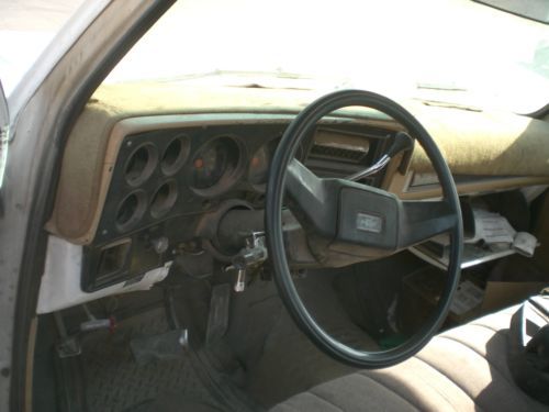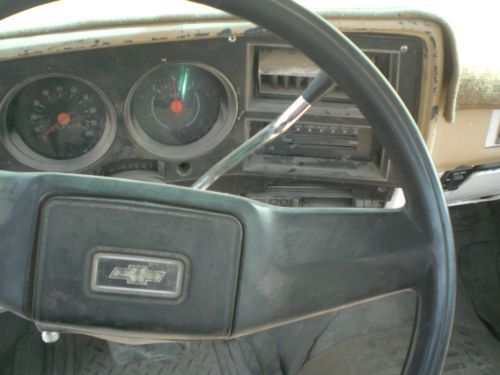 License 3C15976. The truck runs good. This is the 3rd 454 engine it has had. It is a target engine and the compression is good on all 8 cylinders. This 3rd engine probable has less than 30,0000 miles. There is no part on this truck that has not been replaced at least once from the rear end to the radiator which has been replaced 5 times. The front end has all been replaced, including lower A-arms, with new parts 5 years ago. If you are in California, it will past smog emission standards from the tail pipe, but will probably fail to pass, because the carburetor is from a later year and the choke is electric but originally it was mechanical. The Interior is in poor condition. Truck Driver side electric window is broken. Power locks are broken. No air conditioning. It originally had air but would need many new parts to work.