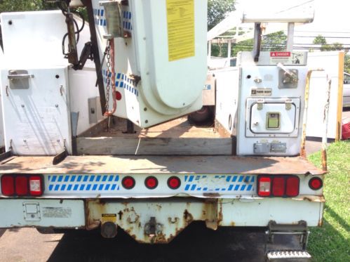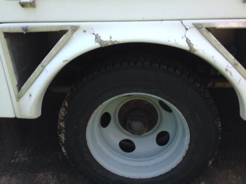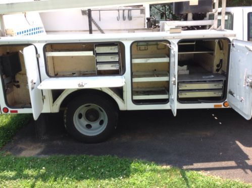 The engine starts easily and sounds very smooth with no noises. When you put it in gear it moves about 10 feet and then the trans starts slipping and it won't go anywhere. The trans leaks fluid. This will have to be towed from Robbinsville, NJ 08691. The rear tires are 95% and front are about 75%. They are heavy duty regroovable tires. This is a WORK truck. It does have many dings and dents. The hood is dented pretty good. The front bumper is all banged up. Radio and heater works fine. front passenger side wheel is rusted. Interior needs cleaning up. Fiberglass utility body has one broken door hinge and has minor damage by the wheel well. Nice slide out trays to keep your stuff organized. I don't have keys for the locks. The generator was removed before I bought this truck. The boom may or may not work, I don't know. You may come to Robbinsville, NJ and check it out, kick the tires, work on it, or what ever, before you buy or make an offer. Call me at 609-933-one three two two. Truck sold as-is. That means you can't bid on it and then complain that the transmission is bad. The battery is out right now, I will put a used battery in it so you can hear it run when you pick it up. I will help with shipping, but you will be responsible for all arrangements. This truck has much less rust on it that others I have seen. Offered as-is, where-is. Thanks for checking this out and happy bidding. also, let me know if you just want the boom, bucket, engine or utility body.