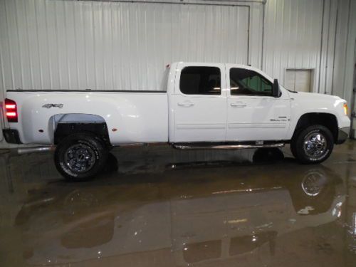2009 GMC 3500 CREW CAB SLT DRW DUALLY DURAMAX 4WD 1 OWNER 53810 MILES (APPLETON WI) 2009 GMC 3500 CREW CAB, SLT, DUALLY, LONG BOX, HEATED TAN LEATHER, BOSE, NEWER HANKOOK TIRES, 1 OWNER, SOUTHERN TRUCK AND ONLY 53,810 MILES WITH A CLEAN CAR FAX. Motor is a 6.6L Duramax Turbo Diesel (LMM) with a 6-speed Allison Transmission with optional tap shift, turn dial 4WD, chrome simulators and 17" steel wheels, Newer LT 265/70 R17 Hankook DynaPro ATM load range E tires. Exterior is Summit white Interior is Tan Leather, dual heated power bucket seats in front with center console, 60/40 split folding bench in rear, memory drivers seat, adjustable pedals, power windows and power door locks, electric rear window defrost, digital dual zone climate control, AM/FM stereo, XM satellite radio ready, 6-disc CD changer, Bose sound system, On Star, steering wheel controls, compass/temperature/mileage display, heavy duty trailering package with receiver with integrated brake controller, fog lights, remote entrance, remote start, dark tinted glass, drivers information center, locking tailgate, roof marker lights, camper style mirrors with power adjust, heat & turn signals. EXTRAS: Fifth Wheel Rails in Bed, Rubber Bed Mat, V-Tuff Off Road 3" Stainless Step Tubes, and tinted front windows. This is A Clean 1 Owner Southern Truck Ready for Work or Play! Any questions please call:
