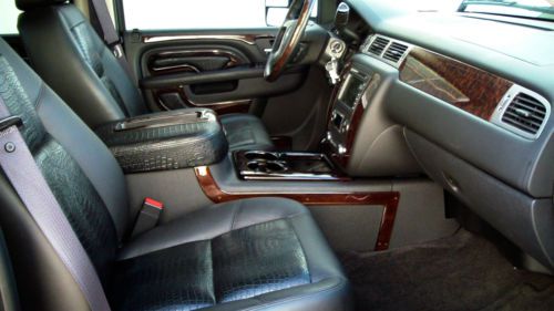 Up for sale is a 1 owner, non smoker, no pets, extremely well cared for Denali. This truck is loaded with every option: Leather, heated and A/C seats, sunroof, navigation, power driver and passenger seats, XM, CD, Aux. port, dual climate, cruise, electronic brake controller, steering wheel controls, parking sensors, back up camera, 20" wheels, and the list goes on! Western Hauler package features: full paint out (bumper inserts, hood cowl, mirrors, tailgate handle, etc.), spray in bed liner, B&W turnover ball, rear cab wing, 50 gal aux. fuel tank, full length running boards, painted mud flaps all the way around, painted vent shades, tinted windows, full wood package on dash and doors with baby croc inserts with covered center console, baby croc inserts in seats (front and rear), built in Passport SR-7 radar w/laser, and cinch monogramed head rests. ($12,500 package). Truck still has warranty, no accidents, great shape! Texas buyers are subject to sales tax, all buyers subject to VIT and $50 doc. fee. |