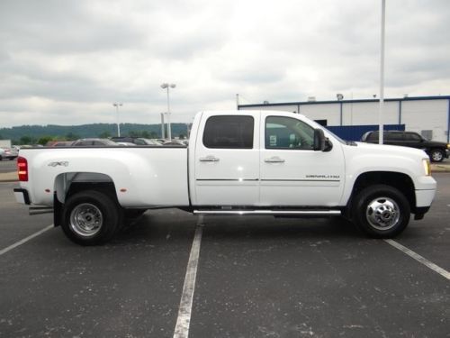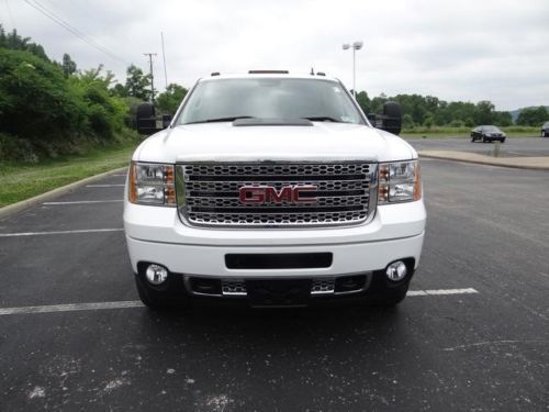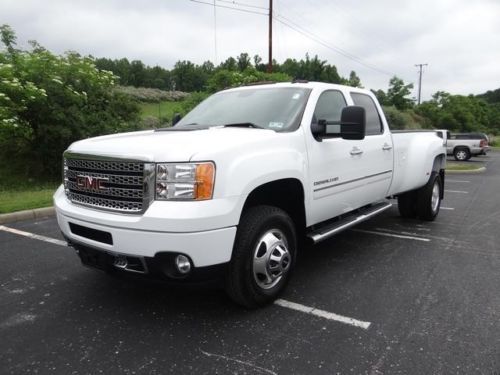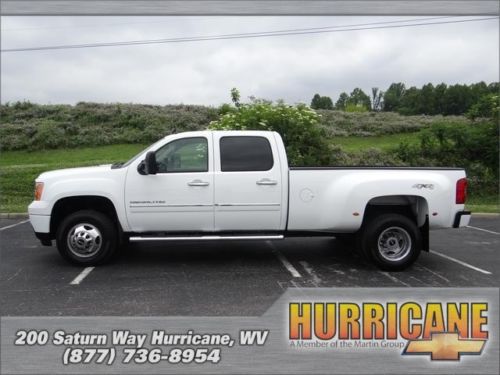 THIS TRUCK IS BEING OFFERED BY HURRICANE CHEVROLET IN HURRICANE WV. IF YOU HAVE SOMETHING TO TOW AND WANT TO DO IT IN COMFORT AND STYLE THIS IS THE TRUCK FOR YOU!! THIS TRUCK IS IN LIKE NEW CONDITION AND LOADED WITH NO VISABLE FLAWS. IT IS A ONE OWNER TRUCK THAT HAS NEVER TOWED ANYTHING!!! BOUGHT TO TOW A HORSE TRAILER BY THE PERVIOUS OWNER BUT WAS NEVER USED!! SHE DROVE THE TRUCK TO RUN ERRANDS LOCALLY AND DECIDED IT WAS TO MUCH TRUCK FOR HER. WE TRADED IT IN LOCALLY CALL DARRELL WALKER 304-562-3005 MECANICAL Duramax 6.6L Turbo Diesel Transmission, 6-speed automatic, heavy-duty, electronically controlled with overdrive and tow/haul mode. Includes Cruise Grade Braking and Powertrain Grade Braking (Requires (L96) Vortec 6.0L V8 SFI engine.)Rear axle, 3.73 ratioSuspension Package, Handling/Trailering, heavy-duty includes 35mm twin tube shock absorbers and 36mm front stabilizer barPickup box, WidesideGVWR, 13,025 lbs. (5908 kg) with dual rear wheels (Requires T*30943 models.)Air cleaner, high-capacityTransfer case, electronic shift with rotary dial controls (Requires 4WD models)Differential, heavy-duty automatic locking rearFour wheel driveTrailering equipment, heavy-duty includes trailering hitch platform, 7-wire harness (harness includes wires for: park lamps, backup lamps, right turn, left turn, electric brake lead, battery and ground) with independent fused trailering circuits mated to a 7-way sealed connector and instrument panel jumper wiring harness for electric trailer brake controllerCooling, external engine oil cooler, heavy-duty air-to-oil integral to driver side of radiator tankCooling, auxiliary external transmission oil cooler, heavy-duty air-to-oilBattery, heavy-duty 600 cold-cranking amps, maintenance-free with rundown protection and retained accessory powerAlternator, 125 ampsTrailer brake controller, integratedRecovery hooks, front, BlackFrame, fully-boxed, hydroformed front sectionSkid Plate Package includes front underbody shield starting behind front bumper and running to first cross-member, protecting front underbody, oil pan, differential case and transfer case, frame-mounted shieldsSuspension, front independent, torsion barSuspension, rear 4+1+2 multi-leaf springs for single rear wheel and 3+1+2 multi-leaf springs for dual rear wheelSteering, powerBrakes, 4-wheel antilock, 4-wheel disc (Standard on T*30943 models only.)Exhaust, aluminized stainless-steel muffler and tailpipeThe features and options listed are for a New 2013 GMC Sierra 3500HD Crew Cab Long Box 4-Wheel Drive Denali and may not apply to this specific vehicle. EXTERIOR Wheels, 17" (45.7 cm) forged polished aluminum (Standard on T*30943 models only.)Tires, LT235/80R17E all-season highway, blackwall (Standard on T*30943 models only.)Tire, spare LT235/80R17E highway includes steel spare wheel (spare wheel will not cosmetically match the other 6 wheels) (Standard on T*30943 models only.)Tire carrier, lockable outside spare, winch-type mounted under frame at rearTire carrier lock keyed cylinder lock that utilizes same key as ignition and doorBumper, front body-colorBumper, rear body-color, step-style with padAir dam, color-keyedMoldings, body-color bodyside with chrome insertGrille, chrome surround with chrome center, Denali-exclusiveHeadlamps, dual halogen composite with automatic exterior lamp control and flash-to-pass featureFog lamps, front, halogenLamps, Smoked Amber roof marker (Standard on (CHX) 13,025 lbs. GVWR (dual rear wheel) only. With single rear wheel GVWR not available with (YF5) California state emissions requirements.)Lamps, dual cargo area lampsMirrors, outside heated power-adjustable vertical camper manual-folding and extension, Black integrated turn signal indicators consisting of 50 square inch flat mirror surface positioned over a 20 square inch convex mirror surface with a common head and lower convex spotter glass (convex glass is not heated or power adjustable)Glass, Solar-Ray deep-tinted (all windows except light-tinted glass on windshield and driver-and front passenger-side glass)Wipers, front intermittent wet-arm with pulse washersDoor handles, chromeTailgate protection top of tailgate protection capTailgate, lockingTailgate, EZ-LiftThe features and options listed are for a New 2013 GMC Sierra 3500HD Crew Cab Long Box 4-Wheel Drive Denali and may not apply to this specific vehicle INTERIOR Seats, front bucket includes 12-way power driver and front passenger seat adjusters, 2-way power lumbar control, heated seat cushions and seatbacks, 2-position driver memory, adjustable outboard head restraints, floor console, dual inboard armrests and storage pocketsSeat trim, Perforated nuance leather-appointed seatsSeats, heated and cooled, seat cushion and seat back for driver and front passenger with 4-way lumbarSeat adjuster, driver 12-way powerSeat adjuster, front passenger 12-way powerSeat, rear 60/40 folding bench (folds up), 3-passenger, folding (includes child seat top tether anchor)Console, floor with CD carrier, storage bin, rear cup holders and rear powerpointsFloor covering, color-keyed carpeting includes rear floor matsFloor mats, color-keyed carpeted first and second row, removableSteering column, Tilt-Wheel, adjustable with brake/transmission shift interlock, color-keyedSteering wheel, heated, leather-wrapped and color-keyed with theft-deterrent locking featureSteering wheel controls, mounted audio and Driver Information Center controls which provides access to enhanced Driver Information Center features and informationInstrumentation, analog with speedometer, odometer with trip odometer, fuel level, voltmeter, engine temperature, oil pressure and tachometerDriver Information Center with odometer, trip odometer and message center (monitors numerous systems depending on vehicle equipment level including low fuel, turn signal "on", transmission temperature and oil change notification)Warning tones headlamp on, key-in-ignition, driver and passenger buckle up reminder and turn signa