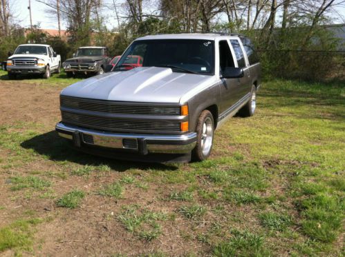 yea I am a dealer but I build a few really neat ones and this is my latest offering, it is a 1996 gmc suburban with just under 150k miles on it and before I started was just a nice truck, but I hit a pole in walmart parkin lot with her so since I had to fix it anyway just went nuts, I put on a cowl hood,phantom grill,new wheels and tires, had it dropped by the pros down here at youngs tire, just put it in a nice tow tone with ghost flames and did everything under the hood tuneup wise including new exhaust that sounds mean as all get out! insides are really nice and that's all I can think of but if you have any questions please let me know...the truck is at 804 s main in searcy ar, you can come by to check it out in person anytime 7 to 5 mon thru Friday, and if any other times just give me a call, there is no warranty on this vehicle either written or implied and there is a 500 deposit via paypal due within 48 hours of auctions end, and the rest in CASH only, I have the title in hand and this truck is in seacy ar so if you are really far off please have all your ducks in a row before biddin as to shipping and all that the truck will have to be paid for in full before leaving and buyer is fully responable for shipping, thanks for looking...