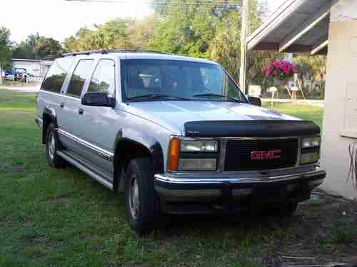 IF your looking for a clean reliable safe 4X4 ONE OWNER vehicle this would be it!! Stored in a garage when not in use. A 1992 4X4 GMC Suburban...Loaded with dual A/C and three row seating. I was told the A/C works fine but just needs to be charged as that is what they had done every few years with NO leaks or burning of oil! Runs like new!! NOT even a single puff of smoke when first starting after sitting a few weeks like most high mileage vehicles. Drives very smooth with approx 1/2 tread life left on tires. Brakes work fine and smooth. Currently has 325,000 miles on all original engine and transmission. These are all Hwy miles and seldom towing a small boat.The 4 wheel drive was seldom used!! This is a straight body never wrecked with factory paint still shiny with factory tinted windows. There is some slight rust on bottom the side rear doors which you have to look close to see it and normal nicks and dents associated with older vehicles. Do not get me wrong this is a very nice looking vehicle!! I purchased this from one of my customers who is in his 80's who purchased it new with no intentions of selling it. Very well mechanically solid and clean!! The interior is like new with NO wear on any of the seating. They kept towels over the whole interior so not to have the sun fade or soil the interior. This is a non smoker vehicle and you would never know you were driving a 20 year old vehicle. I would not hesitate to drive it anywhere. The reason I am selling it is that I purchased this to leave it at a vacation spot I have in the mountains but I repaired a vehicle I already had there since I had some emotional ties with it..So someone is going to get a nice heavy duty solid truck....I had asked a friend who is a Chevy buff if the 325K miles was a concern and he mentioned he has a friend who has 550k on one with no problems and all original....Scott (352) 383-6243 --Feel free to call if any questions....I offer a short term layaway payment plan if needed for all the items I have for sale... This vehicle has also been Zbarted...And this vehicle has NOT been detailed!! You see it just how the condition is and how well maintained the interior has been kept!!