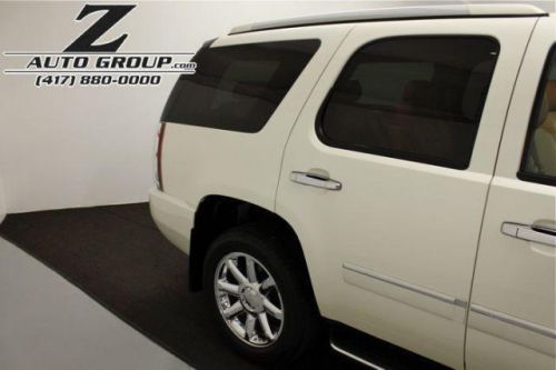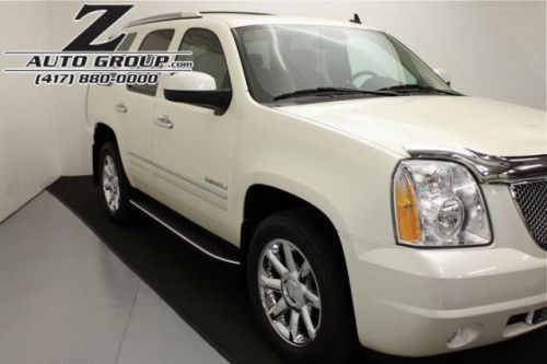 2009 GMC Yukon Denali White Diamond! Pearl White Diamond Exterior, Beige Leather Interior, All Wheel Drive, Navigation, 2nd Row Bucket Seats, 3rd Row Seating, Power Sunroof, Rear DVD Entertainment, Tow Package, Back Up Camera, Heated Front Seats, Heated Rear Seats, Running Boards, Chrome 20 Wheels, Remote Start. Outside is in excellent condition as the pictures show, no dents, dings, or damage present, all original paintwork and panels. Inside is also in excellent condition, no stains or odors present. Tires are in excellent condition, plenty of tread remaining for the new owner. Local 1 owner Denali out of Joplin MO, 100% clean accident free Car Fax, click on the link to view the complete report. Runs, shifts, and drives like new, still is new! You will not find another low mileage Denali as nice as this one anywhere! Feel free to email david@zautogroup.com or call with any questions you may have. Main Office: 866-413-9917 Feel free to inquire about inspection services and transportation / delivery anywhere in the US. The majority of our customers purchase our vehicles "sight unseen". Contact us for details, references, condition guarantee, and our buy back program.