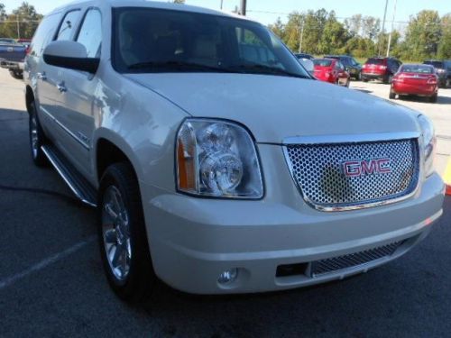 Yukon XL Denali, Vortec 6.2L V8 SPI VVT, Automatic, AWD, White Diamond Tricoat, Cocoa/Light Cashmere Leather, and *ADDED FACTORY OPTIONS-SUN AND ENTERTAINMENT PACKAGE, ALL WEATHER FLOOR MATS, WHEEL THEFT DETERRENT, WHITE DIAMOND TRICOAT*. STOOPS BUICK GMC-Proudly serving the Plainfield, Indianapolis, Mooresville, Greenwood and all surrounding communities for over 2 decades! This 2014 Yukon XL is for GMC fans looking high and low for that perfect luxury SUV. The precision-tuned Vortec 6.2L V8 SPI VVT engine provides the very essence of performance, delivering substantial horsepower and torque. Includes rebates. Does not include tax, doc. Or any dealer added items. Some restrictions apply. Using factory sponsored finance rates will change purchase price. ALL NEW VEHICLES ARE PRICED USING THE CURRENT FACTORY REBATES. SALES TAX, TITLE AND DOC FEE ARE NOT INCLUDED IN PRICE.