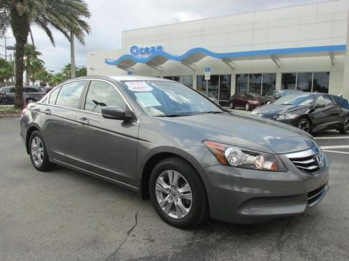 Gray w/Leather-Trimmed Seat Trim. What a price for a 12! You'll NEVER pay too much at Ocean Honda FL! Never any dealer fee at Ocean Honda. Looking for an outstanding deal on a fantastic 2012 Honda Accord? Well, we've got it! Exceptional achievement in fuel efficiency. Get a price quote on this vehicle or any vehicle in our inventory. No games. No tricks. Call us today for your E-price. We can make your new vehicle uniquely yours with window tint, custom tires, custom wheels, spoiler or DVD systems. We have the staff and knowledge to put it all together for you. Get Pre-Qualified:http://www.oceanhondaofportrichey.comWe finance Bad Credit, Bankruptcy & First Time Buyers With No Credit. Apply Now! At Ocean Honda The Customer is Number 1. With no Dealer Fees we are the premier Honda Dealer in the Tampa Bay area. Come see for yourself why Ocean Honda Customers drive from Miles and Miles around to get an Ocean Honda Deal!! 888-469-2710