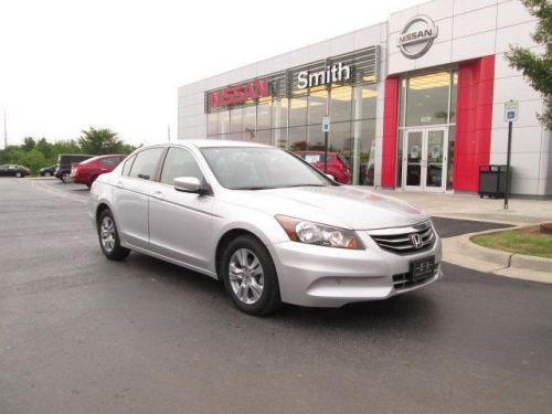 Black w/Leather-Trimmed Seat Trim and Leather. Leather! Silver Bullet! This fantastic 2012 Honda Accord is the low-mileage car you have been searching for. Admirable craftsmanship. Smith Nissan is Western Arkansas, Eastern Oklahoma and NW Arkansas' premier, family owned and operated dealership. Smith has Nissan certified preowned cars and trucks plus plenty of Fords, Chevrolets, Toyotas and Hondas in stock. Ask about our market based pricing at Smith which offers our customers their best value for their money.