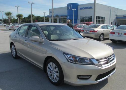 278-hp (SAE Net), 3.5-Liter, 24-Valve, SOHC i-VTEC V-6 Engine 6-Speed Automatic Transmission Honda Satellite-Linked Navigation System with Voice Recognition and FM Traffic Forward Collision Warning (FCW) Lane Departure Warning (LDW) Vehicle Stability Assist (VSA) with Traction Control Anti-Lock Braking System (ABS) Electronic Brake Distribution (EBD) Tire Pressure Monitoring System (TPMS) Advanced Compatibility Engineering (ACE) II Body Structure Dual-Stage, Multiple-Threshold Front Airbags (SRS) SmartVent Front Side Airbags Side Curtain Airbags with Rollover Sensor Lower Anchors and Tethers for CHildren (LATCH): Lower Anchors (2nd- Row Outboard), Tether Anchors (2nd-Row All) Eco Assist System Variable Cylinder Management (VCM) Electric Power-Assisted Rack-and-Pinion Steering (EPS) Hard Disk Drive (HDD) including 16-GB Audio Memory HomeLink Remote System Dual-Zone Automatic Climate Control with Air-Filtration System i-MID with 8-Inch High-Resolution WVGA (800x480) Screen and Customizable Feature Settings Multi-Angle Rearview Camera with Guidelines Honda LaneWatch Bluetooth HandsFreeLink HomeLink Remote System Driver's Seat with 10-Way Power Adjustment, Including Power Lumbar Support and Two-Position Memory Front Passenger's Seat with 4-Way Power Adjustment 360-Watt AM/FM/CD Premium Audio System with 7 Speakers, Including Subwoofer HondaLink featuring Aha Compatibility Audio Touch-Screen Pandora Compatibility XM Radio Bluetooth Streaming Audio One-Touch Power Moonroof with Tilt Feature Security System with Remote Entry Smart Entry System Body-Colored, Heated, Power Side Mirrors with Integrated Turn Indicators and Expanded View Driver's Mirror Don't pay too much for the luxury car you want...Come on down and take a look at this wonderful 2014 Honda Accord. Connoisseurs of great taste rejoice! The Accord is here, ready to indulge your senses with its refined amenities. Come See What Love Honda Can D Love Honda. Located in Homosassa, on US 19, just south of Crystal River! EASY TO GET TO. 866-414-6842
