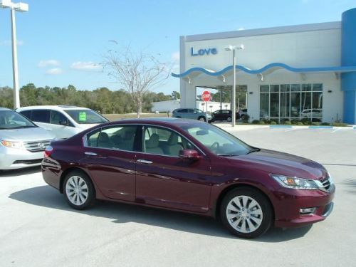 278-hp (SAE Net), 3.5-Liter, 24-Valve, SOHC i-VTEC V-6 Engine 6-Speed Automatic Transmission Honda Satellite-Linked Navigation System with Voice Recognition and FM Traffic Forward Collision Warning (FCW) Lane Departure Warning (LDW) Vehicle Stability Assist (VSA) with Traction Control Anti-Lock Braking System (ABS) Electronic Brake Distribution (EBD) Tire Pressure Monitoring System (TPMS) Advanced Compatibility Engineering (ACE) II Body Structure Dual-Stage, Multiple-Threshold Front Airbags (SRS) SmartVent Front Side Airbags Side Curtain Airbags with Rollover Sensor Lower Anchors and Tethers for CHildren (LATCH): Lower Anchors (2nd- Row Outboard), Tether Anchors (2nd-Row All) Eco Assist System Variable Cylinder Management (VCM) Electric Power-Assisted Rack-and-Pinion Steering (EPS) Hard Disk Drive (HDD) including 16-GB Audio Memory HomeLink Remote System Dual-Zone Automatic Climate Control with Air-Filtration System i-MID with 8-Inch High-Resolution WVGA (800x480) Screen and Customizable Feature Settings Multi-Angle Rearview Camera with Guidelines Honda LaneWatch Bluetooth HandsFreeLink HomeLink Remote System Driver's Seat with 10-Way Power Adjustment, Including Power Lumbar Support and Two-Position Memory Front Passenger's Seat with 4-Way Power Adjustment 360-Watt AM/FM/CD Premium Audio System with 7 Speakers, Including Subwoofer HondaLink featuring Aha Compatibility Audio Touch-Screen Pandora Compatibility XM Radio Bluetooth Streaming Audio One-Touch Power Moonroof with Tilt Feature Security System with Remote Entry Smart Entry System Body-Colored, Heated, Power Side Mirrors with Integrated Turn Indicators and Expanded View Driver's Mirror Don't pay too much for the luxury car you want...Come on down and take a look at this wonderful 2014 Honda Accord. Connoisseurs of great taste rejoice! The Accord is here, ready to indulge your senses with its refined amenities. Come See What Love Honda Can D Love Honda. Located in Homosassa, on US 19, just south of Crystal River! EASY TO GET TO. 866-414-6842