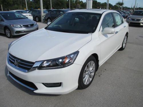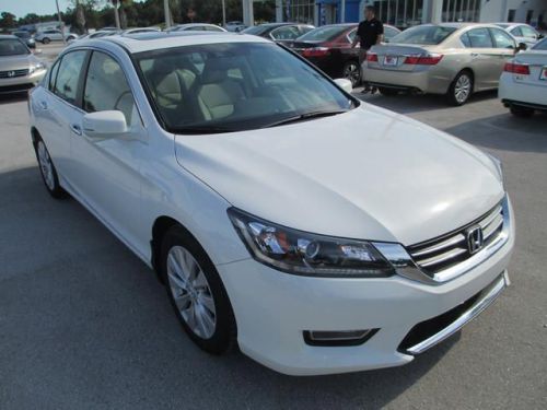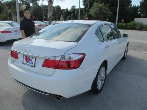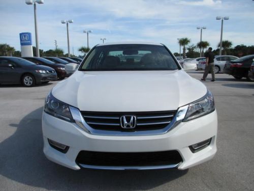 185-hp (SAE Net), 2.4-Liter, 16-Valve, DOHC i-VTEC 4-Cylinder Engine with Direct Injection Continuously Variable Transmission (CVT) 17-Inch Alloy Wheels One-Touch Power Moonroof with Tilt Feature Eco Assist System Forward Collision Warning (FCW) Lane Departure Warning (LDW) Multi-Angle Rearview Camera with Guidelines Driver's Seat with 10-Way Power Adjustment, Including Power Lumbar Support and Two-Position Memory Front Passenger's Seat with 4-Way Power Adjustment Leather-Trimmed Interior Heated Front Seats 360-Watt AM/FM/CD Premium Audio System with 7 Speakers, Including Subwoofer HondaLink featuring Aha Compatibility Audio Touch Screen XM Radio LED Brake Lights Hill Start Assist Vehicle Stability Assist (VSA) with Traction Control Advanced Compatibility Engineering (ACE) II Body Structure Dual-Zone Automatic Climate Control with Air-Filtration System i-MID with 8-Inch High-Resolution WVGA (800x480) Screen and Customizable Feature Settings Rearview Camera with Guidelines Bluetooth HandsFreeLink SMS Text Message Function Illuminated Steering Wheel-Mounted Cruise, Audio, Phone and i-MID Controls Honda LaneWatch Push Button Start Smart Entry System Pandora Compatibility Bluetooth Streaming Audio USB Audio Interface MP3/Auxiliary Input Jack Security System with Remote Entry Chrome Door Handles Chrome Exhaust Finisher Don't pay too much for the luxury car you want...Come on down and take a look at this wonderful 2014 Honda Accord. Connoisseurs of great taste rejoice! The Accord is here, ready to indulge your senses with its refined amenities. Come See What Love Honda Can Do For You!!! Love Honda. Located in Homosassa, on US 19, just south of Crystal River! EASY TO GET TO. 866-414-6842