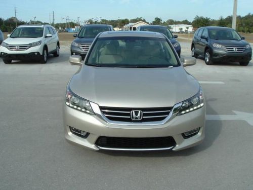 278-hp (SAE Net), 3.5-Liter, 24-Valve, SOHC i-VTEC V-6 Engine 6-Speed Automatic Transmission Honda Satellite-Linked Navigation System with Voice Recognition and FM Traffic Forward Collision Warning (FCW) Lane Departure Warning (LDW) Vehicle Stability Assist (VSA) with Traction Control Anti-Lock Braking System (ABS) Electronic Brake Distribution (EBD) Tire Pressure Monitoring System (TPMS) Advanced Compatibility Engineering (ACE) II Body Structure Dual-Stage, Multiple-Threshold Front Airbags (SRS) SmartVent Front Side Airbags Side Curtain Airbags with Rollover Sensor Lower Anchors and Tethers for CHildren (LATCH): Lower Anchors (2nd- Row Outboard), Tether Anchors (2nd-Row All) Eco Assist System Variable Cylinder Management (VCM) Electric Power-Assisted Rack-and-Pinion Steering (EPS) Hard Disk Drive (HDD) including 16-GB Audio Memory HomeLink Remote System Dual-Zone Automatic Climate Control with Air-Filtration System i-MID with 8-Inch High-Resolution WVGA (800x480) Screen and Customizable Feature Settings Multi-Angle Rearview Camera with Guidelines Honda LaneWatch Bluetooth HandsFreeLink HomeLink Remote System Driver's Seat with 10-Way Power Adjustment, Including Power Lumbar Support and Two-Position Memory Front Passenger's Seat with 4-Way Power Adjustment 360-Watt AM/FM/CD Premium Audio System with 7 Speakers, Including Subwoofer HondaLink featuring Aha Compatibility Audio Touch-Screen Pandora Compatibility XM Radio Bluetooth Streaming Audio One-Touch Power Moonroof with Tilt Feature Security System with Remote Entry Smart Entry System Body-Colored, Heated, Power Side Mirrors with Integrated Turn Indicators and Expanded View Driver's Mirror Don't pay too much for the luxury car you want...Come on down and take a look at this wonderful 2014 Honda Accord. Connoisseurs of great taste rejoice! The Accord is here, ready to indulge your senses with its refined amenities. Come See What Love Honda Can D Love Honda. Located in Homosassa, on US 19, just south of Crystal River! EASY TO GET TO. 866-414-6842