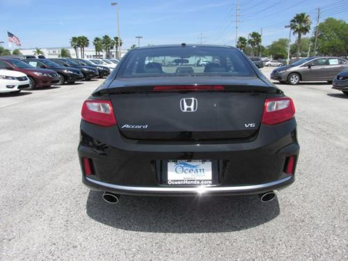 Black. Wow! What a sweetheart! My! My! My! What a deal! Never any dealer fee at Ocean Honda. This 2014 Accord is for Honda nuts looking all around for that perfect car. It is nicely equipped with features such as Black, 4-Wheel Disc Brakes, 7 Speakers, ABS brakes, Air Conditioning, Alloy wheels, Automatic temperature control, Brake assist, Bumpers: body-color, CD player, Delay-off headlights, Driver door bin, Driver vanity mirror, Dual front impact airbags, Dual front side impact airbags, Electronic Stability Control, Four wheel independent suspension, Front anti-roll bar, Front Bucket Seats, Front Center Armrest, Front dual zone A/C, Front fog lights, Front reading lights, Fully automatic headlights, Garage door transmitter: HomeLink, Heated door mirrors, Heated Front Bucket Seats, Heated front seats, Illuminated entry, Leather steering wheel, Low tire pressure warning, Memory seat, MP3 decoder, Occupant sensing airbag, Outside temperature display, Overhead airbag, Overhead console, Panic alarm, Passenger door bin, Passenger vanity mirror, Perforated Leather-Trimmed Seats, Power door mirrors, Power driver seat, Power moonroof, Power steering, Power windows, Radio data system, Rear anti-roll bar, Rear seat center armrest, Rear window defroster, Remote keyless entry, Security system, Speed control, Speed-sensing steering, Speed-Sensitive Wipers, Spoiler, Steering wheel mounted audio controls, Tachometer, Telescoping steering wheel, Tilt steering wheel, Traction control, Trip computer, Turn signal indicator mirrors, and Variably intermittent wipers. Be prepared to be transformed when you get behind the wheel and feel the power surge right into your very soul as you mash the gas and zoom off over the horizon. Get a price quote on this vehicle or any vehicle in our inventory. No games. No tricks. Call us today for your E-price. We can make your new vehicle uniquely yours with window tint, custom tires, custom wheels, spoiler or DVD systems. We have the staff and knowled At Ocean Honda The Customer is Number 1. With no Dealer Fees we are the premier Honda Dealer in the Tampa Bay area. Come see for yourself why Ocean Honda Customers drive from Miles and Mile around to get an Ocean Honda Deal!! 888-516-2591