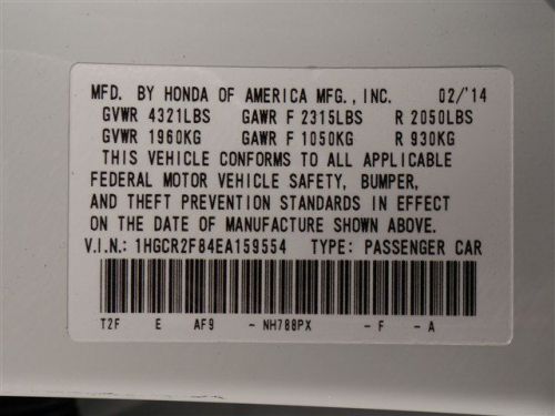 VIN (Vehicle Identification Number): 1HGCR2F84EA159554