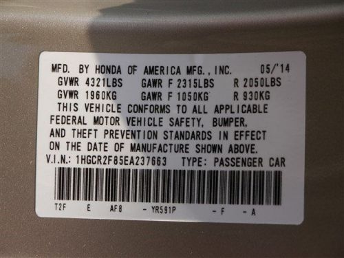 VIN (Vehicle Identification Number): 1HGCR2F85EA237663