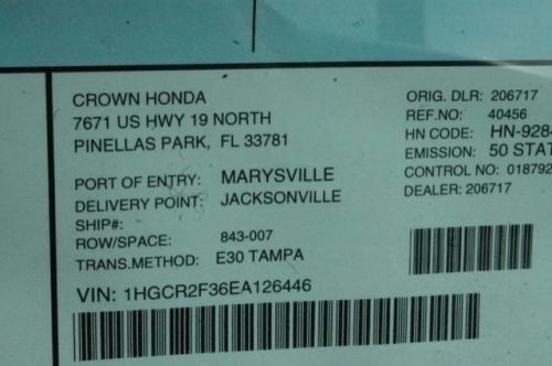 VIN (Vehicle Identification Number): 1HGCR2F36EA126446