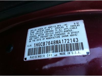1991 Honda Accord Super Clean Runs And Drives Great Cheap Must Sell Dealer Trade on 2040-cars