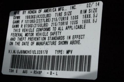 VIN (Vehicle Identification Number): 5J6RM3H31EL026179