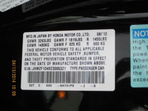 2012 honda cr-z base hatchback 2-door 1.5l(US $12,450.00)