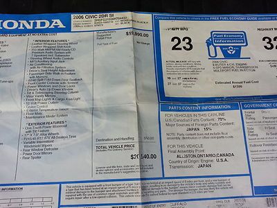 06 06' Si Manual 6 Speed 2 Door Coupe 2.0l Vtec Ivtec Civicsi No Reserve Injen on 2040-cars