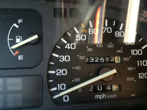 Mechanical: Burns a little oil. Power steering leaks a bit, although the Lucas power steering stop leak seems to be doing a decent job of handling that. AC works! Body: Minor dings, no rust. The left front fender and door were replaced about 7 years ago, after my dad backed into it in the driveway. ;-) Hence the slightly mismatched paint-- that's a clear coat issue. Interior: All upholstery except for driver's seat is in reasonably good shape. Driver's seat is worn through (see pic). There are some minor pry marks where somebody tried (unsuccessfully) to steal the stereo. Needs new rear hatch lift supports. Pretty much everything on this car is stock. It was stolen once, many years ago, and it came back to me missing its ashtray and its donut spare. I never replaced the ashtray. Replaced the spare with a full-size. It's a 91, so no ABS, no air bags, none of that safety stuff. Drive carefully, y'all. It's located in Tucson, AZ, and will not be shipped, so buyer is responsible for pickup. The car is being sold as-is-- no warranties, no returns, no givesies-backsies. Feel free to ask questions, request other pics, etc. On Sep-23-14 at 08:28:51 PDT, seller added the following information: EDIT: Forgot, because it hides behind the visor: There's a crack a few inches long at the top of the windshield. On Sep-23-14 at 11:28:26 PDT, seller added the following information: Because somebody asked: Timing belt was replaced at 208K. |