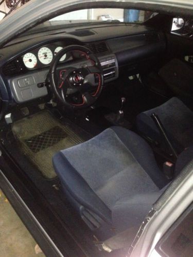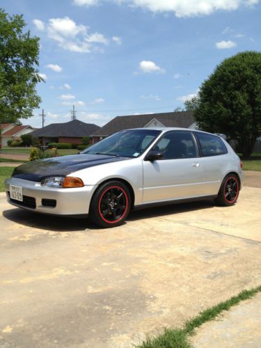 You are bidding on a very special car. Its a Honda Civic 93 hatch build with new parts. It was a project car for me and I had my fun. I did not get to finish the back set interior though, but really did not need it. Now its time for someone else to enjoy this car. This Civic is a import guys dream. Its has everything to drive everyday. It does not have heat nor air. You can add if you would like I just did not need it for myself. The car has a B18C 5 Type R motor from hmotorsonline. All new suspension, bushing,gas tank,head lights,steering wheel,carpet,floor mats and wheels and tires. All the suspension is Skunk2. New windshield, paint, and cd player with speakers. The car was built from a chassis. There are many new parts. I drove the car all summer and had a blast. The next owner of this car will have the same fun as I have had. Plus the car got 500 miles on one tank of gas and the gas tank is a 13 gallon tanks. Looking for good gas mile and enjoying ride this is the car for you. It is just time for me to let it go to another person who will take care of it like I did. I have put around $12,000 in the car. This will be my lose and your gain. All import guy will understand that. I have a video on Youtube.com for the build. Please go to youtube.com to watch the build. Just type in cxnastey in Mississippi and click on the picture of the motor on the pallet. Good luck and happy biddy. For any question please feel free to ask.