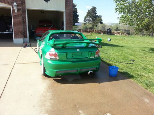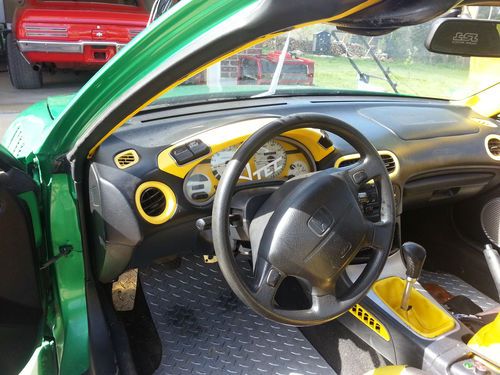 the current engine in this one of a kind del sol is stock but its clean with lots of detail and love. The car runs and drives like new the air conditioning works good and all the windows roll up and down as they should including the back window. the paint is very nice a person can probably find flaws in it if they look hard but not unless you look hard for flaws. it has some kind of ceramic racing clutch in it and it has a nos system in the trunk that is not hooked up but was on the previous engine so i was told anyway. it has custom racing seats and racing seat belts and it has a upgraded sterio with large subs behind the seats. There is a lot of detail that has been done on this car for example the brake calipers are painted yellow to match the interior. this car is very sharp and its one of a kind. you wont be disapointed.
