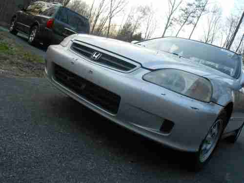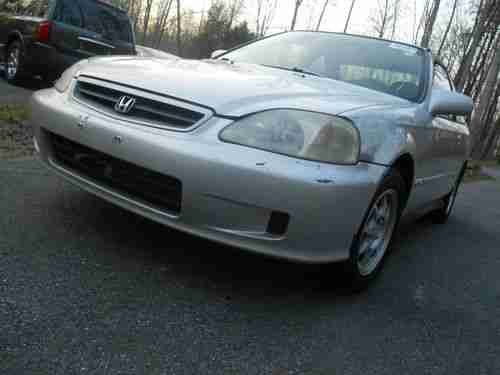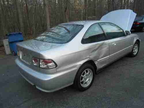 YOU ARE LOOKING AT A 2000 HONDA CIVIC HX 5 SPEED RARE TO FIND,ITS SILVER WITH GREY INTERIOR,I GOT THIS CAR AS A TRADE LAST WEEK WHEN MY CAR WAS PURCHASED.IT HAS SOME BODY DAMAGE BUT THAT DOES NOT AFFECT THE DRIVING OF IT,I TOOK IT FOR S SPIN AND ITS PRETTY LOUD.IT HAS AC AND RUNS VERY FAST.THE DRIVER WINDOW DONT GO ALL THE WAY UP AS YOU CAN SEE IN THE PICTURE.