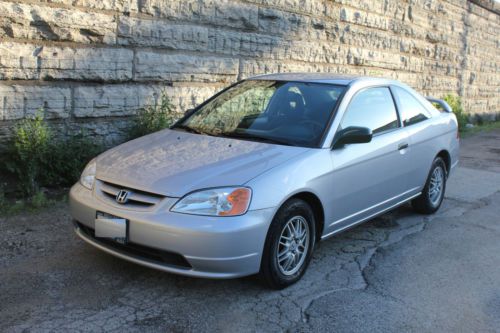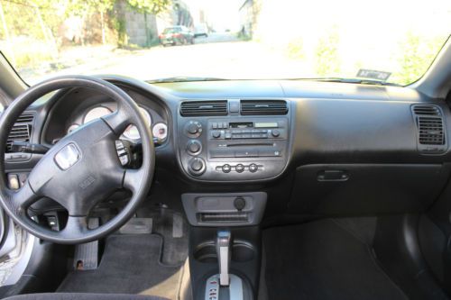 · NICE HIGH VALUE LOW COST HONDA CIVIC!! · Year: 2001, Make: HONDA CIVIC; Model: LX; Body style: COUPE 2D; Doors:2 DOORS; Mileage::112,250.00 ; Engine: 4-CYL 1,7 LITER · Transmission: AUTOMATIC; Fuel Type: GAS ; Exterior Color: SILVER;Interior Color: GREY; Fuel economy : CITY 26/HWY 34 · LX trim, air conditioning, power windows, power door lock, cruise control , am /fm strereo; cassette , cd , dual air bags, rear and back spoilers, premium wheels. The car runs great no accidents. |