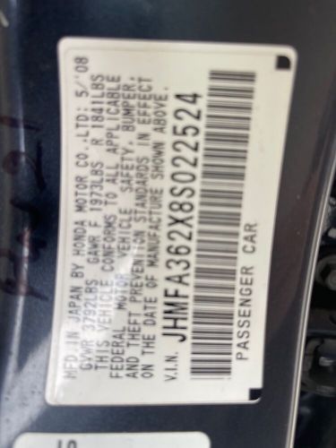 VIN (Vehicle Identification Number): JHMFA362X8S022524