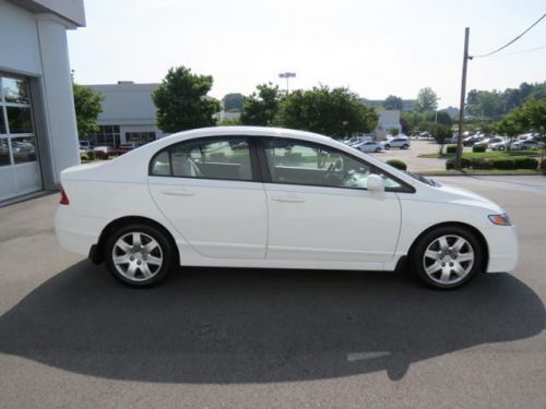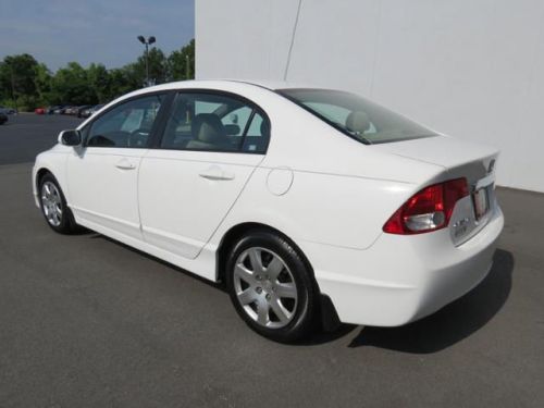 This taffeta white 2010 Honda Civic Sdn 4dr Auto LX is a reliable and enjoyable-to-drive small car! This Civic is an IIHS top safety pick with 5-star safety ratings and averages 25/36 MPG. This car has standard features including front/side/head airbags, child seat anchors, child safety locks, anti-theft security system, AC, cruise control, AM/FM/CD/MP3 capabilities, and full power accessories! Call Fiat of the Triad, located in Greensboro NC, to schedule a test drive today! * The advertised price does not include sales tax, vehicle registration fees, other fees required by law, finance charges and any documentation charges. * Images, pricing and options shown are examples, only, and may not reflect exact vehicle color, trim, options, pricing or other specifications.