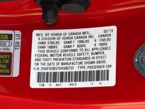 VIN (Vehicle Identification Number): 2HGFG3B57DH506735
