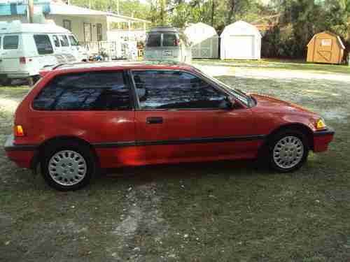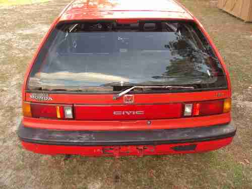 We are pleased to offer, to one lucky bidder, this very nice, sporty little Honda Civic Si hatchback! This little red rocket has had just one owner, since new, and it really shows. The interior of this car, unlike most cars it's age, is almost new! The seats, door panels, dash, and carpet are all in excellent shape, and the car has never been smoked in! The lighter has never even been used! The exterior of the car is very straight and the paint is mostly, shiny. I believe that with a professional detail, it would look great! There is one very small rust spot on the right rear wheel opening, and other than that, I can find no other rust at all.The car runs very strong and smooth! The transmission is very slick shifting, with no grinding or any other unusual noises. The car drives very well, although there is a slight pulsation in the brakes when they are applied. You'd search long and hard to find one these Civics that is this nice! These first generation Si's are pretty rare, and an absolute blast to drive! I've set a very reasonable reserve on this car, so you may bid with confidence! I try to describe all of my vehicles as accurately as possible, but any and all questions are welcomed and indeed encouraged! My name is Pat and my number is (352)214-7896 As with all of my listings, I reserve the right to end it early, as the car is being offered for sale locally! Thanks, and Happy Bidding!