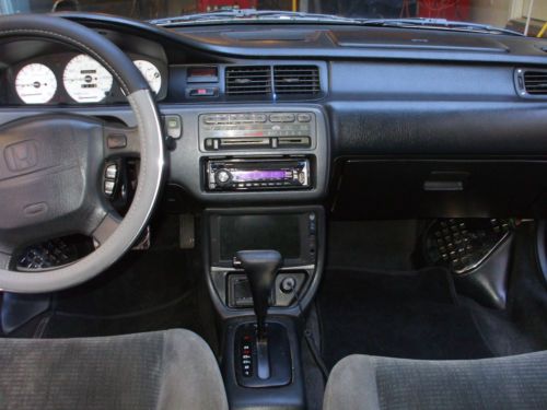 To begin with, I am the second owner. I have had this car for 12 years now. It is still currently my daily driver, so miles can go up. It has 251,000 miles and another 250,000 or more to go. Under hood it has a cold air intake and a strut bar. It has a xenon polyurethane body kit and 17 inch proline alloy gunmetal rims. It has Fast and Furious front lights and Led back lights with matching painted trim rings. It has a kenwood receiver with usb port. Considered antique now there is a system that is still 90% functional from 1996. It has two 10 inch subs, one working , one 600 watt amp(custom stainless steel chromed covers on subs and amp in back of seat, subs are in one of 5 custom fiberglass enclosures, 2 equalizers and 4 of 8 fuses with a capacitor are in a custom painted fiberglass tub with original spare in the trunk. It has the third eq in the right back seat with a hidden cover. There is a volt meter where the ash tray was and bass and treble control knobs under the e-brake. The trunk was only raised 2 inches. It has shaved fiberglass around the custom tub and the amp in back seat and trunk with blue neons accenting it. It has an audiovox alarm system with windows and sunroof options. I can also call the car with a code and command certain actions, including stolen car It is set up for Sirius satellite radio, needs antenna and a credit/debit card . It has a 7 inch touchscreen t.v and a ps one. It was the x-tant sponsor civic in several shows in the late 90's, was in car sound, security, and performance magazine with 3 pages in the late 90's. It was invited but never gone to the IASCA world nationals twice, I have the invites. I have the magazine and build book on vehicle. System in the 90's with labor was over 14,000.00 The oil has been changed at least every 3000 miles and every necessary tune up needed has been done. The V-tech engine has been rebuilt within this past year with less than 3000 miles on it. New piston rings, honed cylinders, all new engine seals, and a slightly shaved engine head, still all original. It also has within the past year: all new dayco drive belts and timing belt, new engine mounts,(all 4,) new lifetime warranty alternator and starter, new radiator 5 new coolant hoses, new high quality trans fluid, new asian coolant, new battery, new speed sensor, ceramix front brake pads, two brand new tires and 2 with medium tread, and a new master cylinder( I have over 2500.00 in receipts for past year and over 15,000 from life of vehicle. The paint job should last quite longer than my own home. Even the underside of the hood is painted and clearcoated. It was fully sanded with glass out, then resealed and retinted glass of course, then 2 coats of 250.00 a gallon black base, body kit parts painted the same way separately. second coat had blue pearl, then 3 coats of clearcoat. It was the last full vehicle that my very trusted body man of 30 years experience done before disability. Oh, the negatives: air conditioning is cool but not ice cold, but heat works great. It has some slightly visible door dings and has barely visible (up close) hail damage, no rust that I or anybody knows of.. Pics are obvious and recent. I will accept cash only. Cash means you can be the new king/queen of this car. Sold as-is and buyer is responsible of shipping or pickup after funds are received. No reserve and happy bidding. If you have any questions please feel free to ask. No"accidental" bidding please.