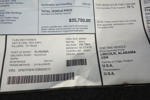 2005 honda pilot ex all wheel drive sport utility 3.5 third row seat(US $5,999.00)