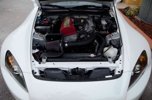 THIS CAR IS A 2005 HONDA S2000, IT WAS PAINTED TWO MONTHS AGO WITH MALENIUM PEARL WHITE. IT IS IN GREAT CONDITION. THE LEATHER SEAT ARE ORIGINAL TO THE CAR AND THEY ARE IN PERFECT CONDITION. CARPET HAS NO STAINS. ALL THE ELECTRONICS ARE WORKING. IT HAS NEW TIRES 225 35 WITH WHEELS XXR 521 18X10+25 OFFSET. EXHAUST INVIDIA N1 AND INVIDIA 70MM TEST PIPE THE CEL FIX. INTAKE: K&N INTAKE. SUSPENTION: BUDDY CLUB N+. CLEAR SIDE MARKERS. TYPE R SHIFTER KNOB WITH RED STITCHING SHIFTER BOOT. HAS NOT RUBBING WHEN TURNING. HAS NOT LICKS. THE ENGINE HAS ALL RACING FLUIDS ENGINE AND TRANSMITION (ALL THIS WAS DONE AT DYNAMIC TURBO A VERY RELIABLE PLACE THAT BUILDS RACE CARS). IT HAS A 4 CYLINDER F22C MOTOR. THE CAR WAS PURCHASED IN CALIFORNIA. HAS LOJACK WITH THE REMOTE. THREE SETS OF KEYS AND TWO REMOTES. NOT SMOKERS. VERY CLEAN.