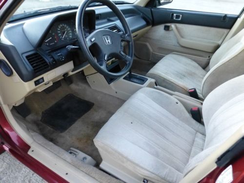 VERY LOW MILEAGE! - JUST OVER 36,000 MILES GREAT ON GAS! AUTOMATIC TRANSMISSION! VERY RELIABLE, TIME TESTED & PROVEN 4 CYL ENGINE RUNS LIKE NEW!! GORGEOUS, CLEAN FEMALE OWNED CAR. TAN CLOTH INTERIOR IS IN EXCELLENT CONDITION THE BODY IS ALSO EXCELLENT, PAINT IS *BEAUTIFUL* POWER WINDOWS, POWER LOCKS AND STEREO ALL WORK. SUNROOF WORKS, IT DOES NOT LEAK A/C BLOWS ICE COLD AND THE HEAT WORKS REALLY WELL. MATCHING SET OF TIRES IN EXCELLENT CONDITION NICE CLEAN, ALLOY WHEELS! ONE WHEEL COVER DOESNT STAY ON THE WHEEL BRAKES ARE EXCELLENT. SUSPENSION IS EXCELLENT. ALL THE HEAD LIGHTS, AND TAIL LIGHTS WORK FINE. CLEAN CARFAX & AUTOCHECK. THIS CAR IS READY TO DRIVE TODAY!! THIS CAR NEEDS NOTHING BUT A NEW OWNER! CRUISE CONTROL WORKS FINE MINOR RUST BUBBLES AT THE CORNER OF THE REAR WHEEL WELL MINOR SUN FADING ON ROOF. PAINT LOOKS TO BE ALL ORIGINAL! *DO NOT MISS THIS ONE* IT WILL BE QUITE SOME TIME BEFORE YOU SEE ANOTHER 25 YEAR OLD 36,000 MILE HONDA ACCORD!! *IF YOU HAVE BEEN LOOKING FOR A CLEAN ONE OWNER, LOW MILEAGE, WELL MAINTAINED HONDA ACCORD THIS IS THE ONE!* *THIS AUCTION ENDS MONDAY DECEMBER 2 AT JUST BEFORE 9:35 PM EST* **GOOD LUCK** THE CAR IS DRIVABLE ANYWHERE IN THE USA AS SHE SITS! TERMS OF SALE.... CAR IS SOLD AS-IS , WHERE IS, NO WARRANTY AT ALL DEPOSIT DUE IN 24 HOURS, BALANCE IN 7 DAYS AFTER AUCTION PICK UP CAR IN 14 DAYS AFTER SALE $125 DOC FEE WILL BE ADDED TO ALL SALES. |