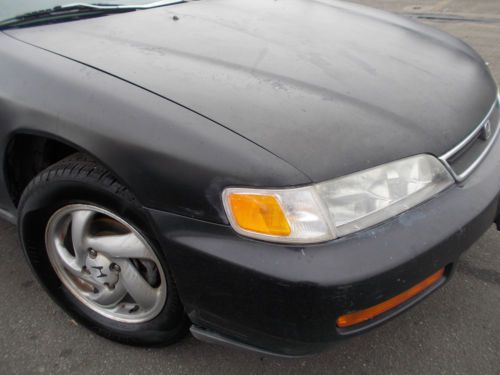 Up for auction is a 1997 Honda Accord that was recently donated to a national charitable foundation and is being sold with NO RESERVE. The vehicle is equipped with a 4cyl engine and a 5 speed manual transmission. The odometer shows 276,531 miles. It’s fairly well equipped with most of the options. The seats are gray and appear to be in decent condition, although a good detail will make a huge difference. The exterior of the car is black and is showing signs of wear and is faded. It has a few door dings and scratches. The tires appear to HAVE ROUGHLY 40% road life left. Please refer to the photos included in this auction for more description details. This vehicle RUNS. ***NEEDS A TUNE UP*** ***WINDSHIELD CRACKED***